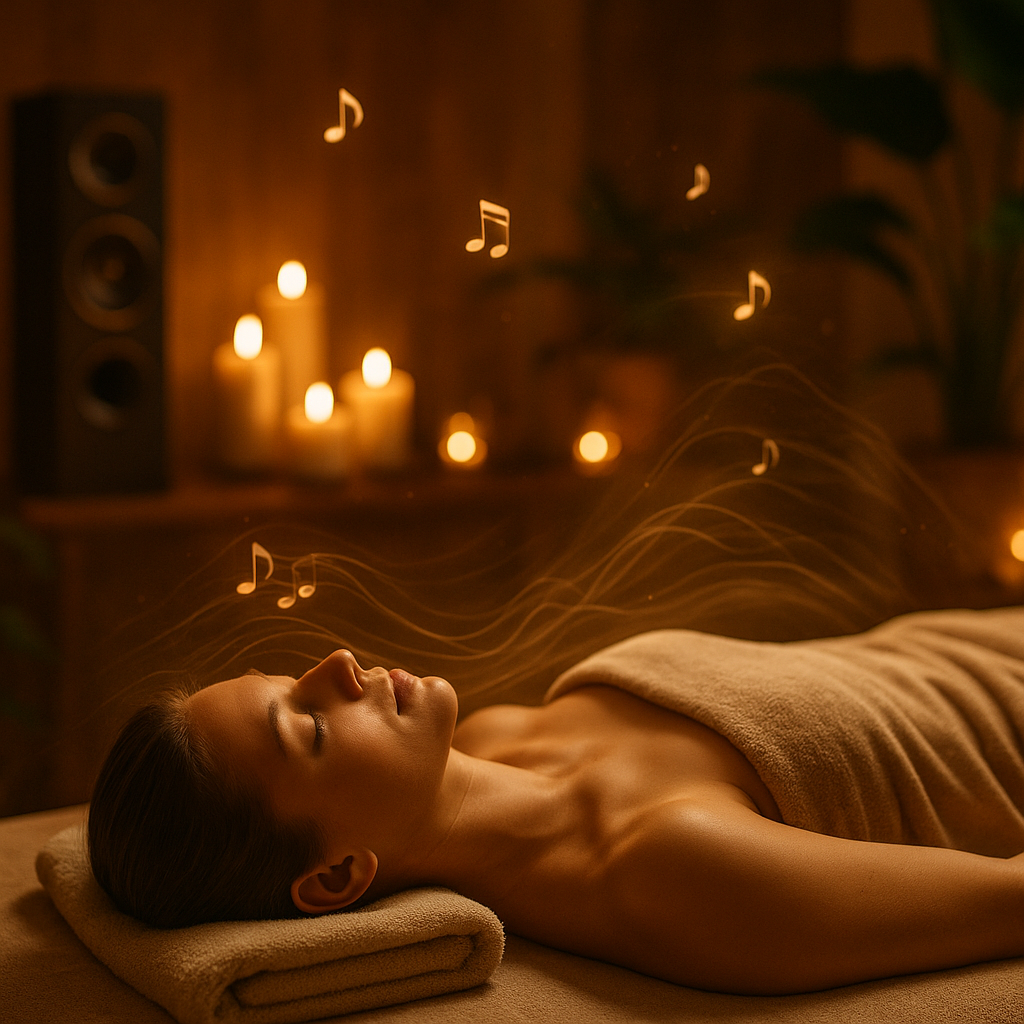 A música suave utilizada no Espaço Girassol não é apenas um detalhe, mas parte essencial da experiência de bem-estar, regulando o ritmo da respiração, acalmando a mente, reduzindo o estresse e potencializando os efeitos das massagens e terapias.
