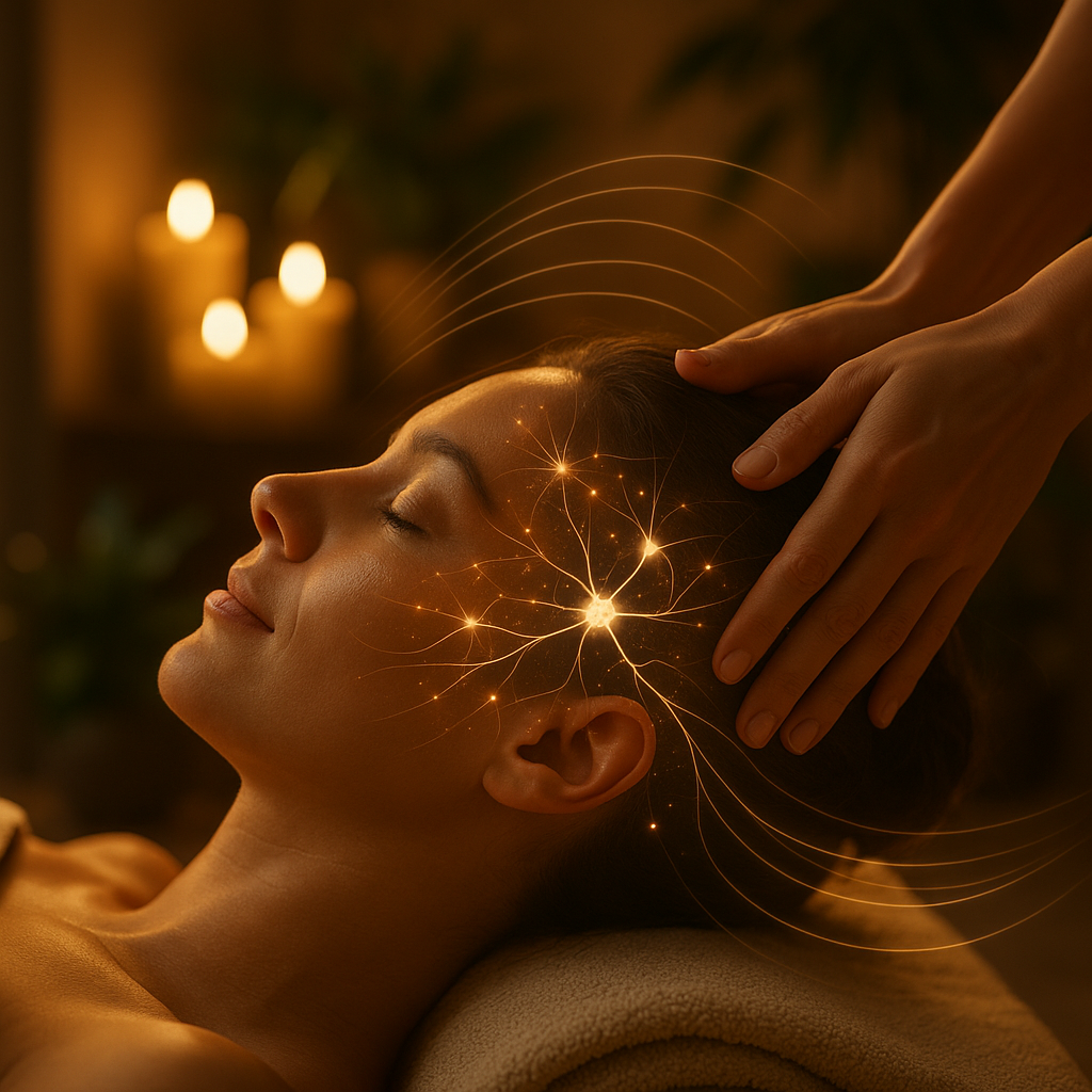 Durante uma sessão de massagem, o cérebro entra em um estado de equilíbrio, modulando hormônios, ajustando ondas cerebrais e criando uma sensação profunda de calma que se reflete em todo o corpo e na forma como sentimos o mundo ao redor.